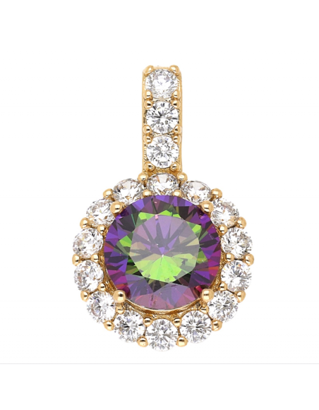 ZAWIESZKA POZŁACANA , MIEDZIANA Z WIĘKSZĄ CYRKONIĄ OTOCZONA MAŁYMI CYRKONIAMI O WIELKOŚCI 23/14MM
